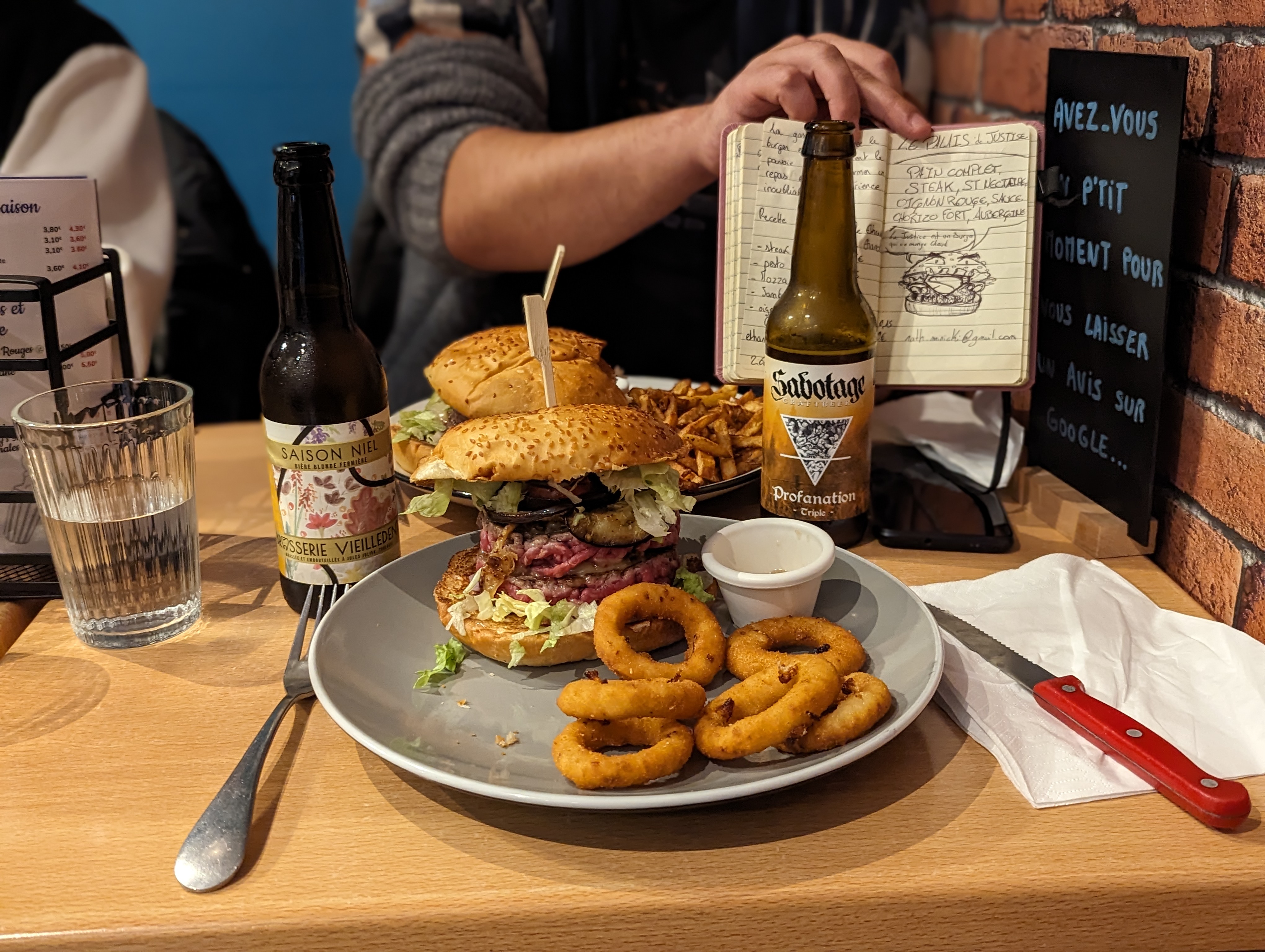 Excellent burgers, service agréable, bonne bière pression,pâtisserie maisons prix agréables.