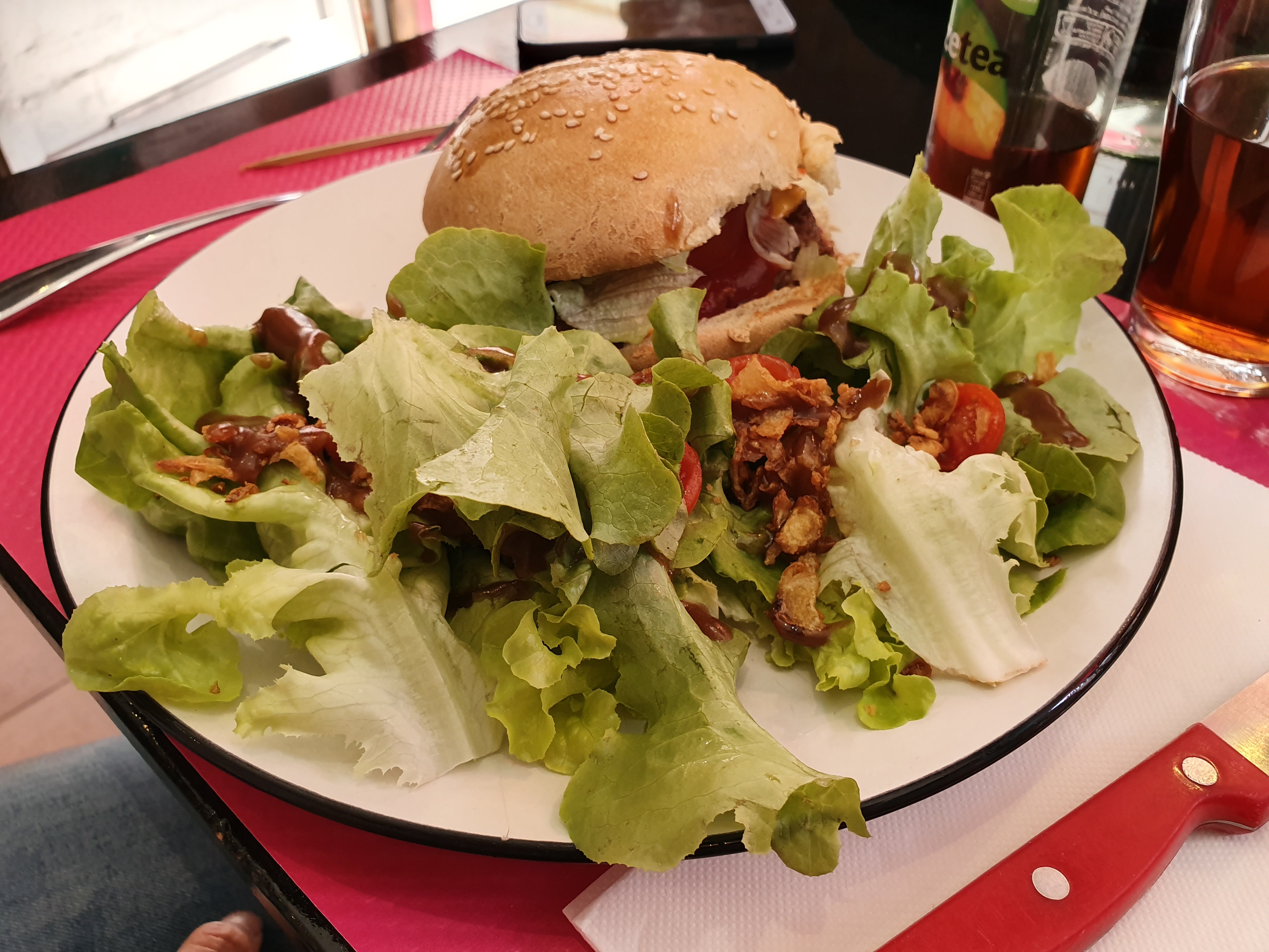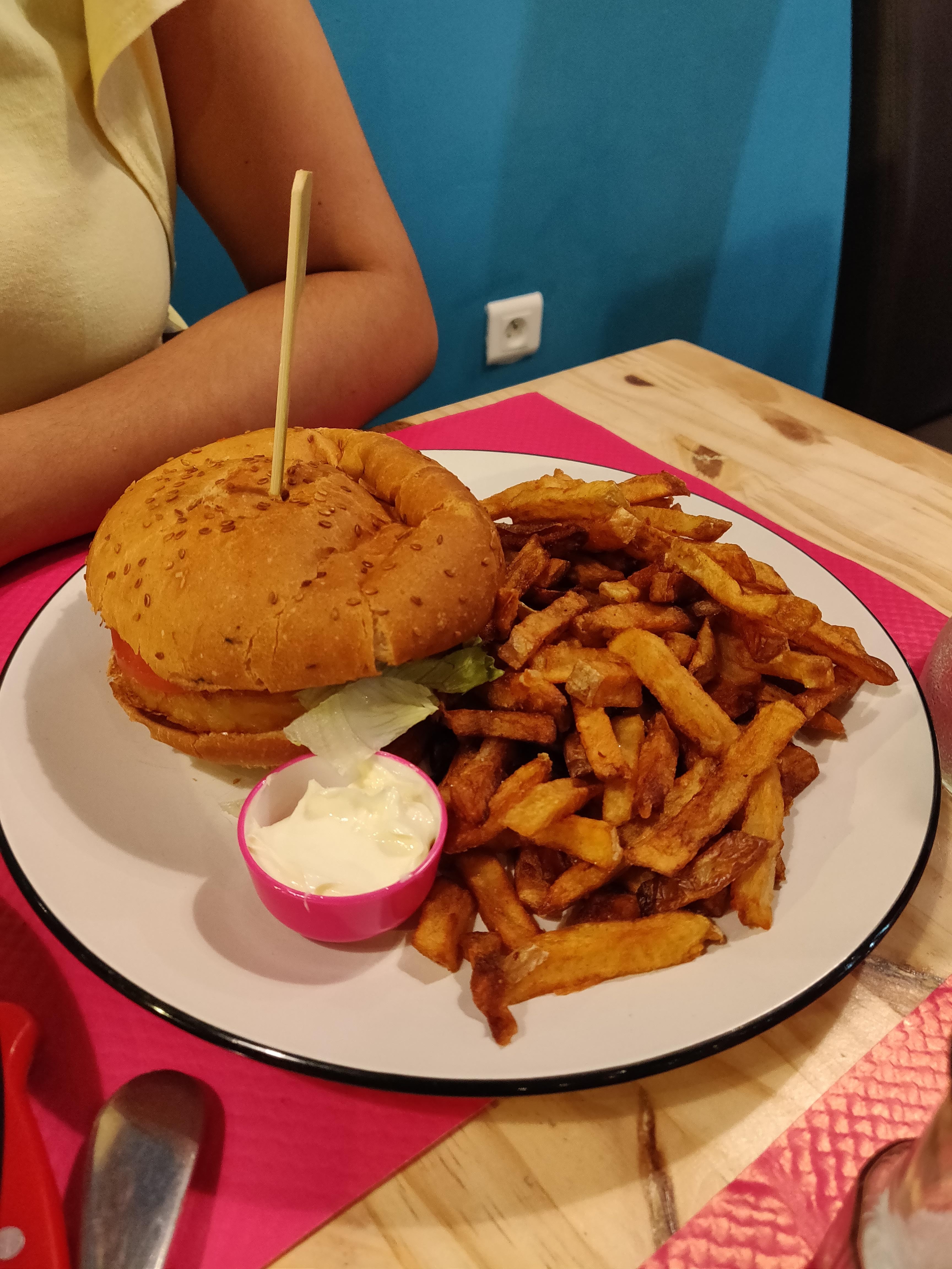 Cadre très sympa avec un très bon accueil et des Burger vraiment savoureux. Pas mal de choix avec également des wraps et des salades. J’ai pris le Burger du moment avec une galette de pommes de terre en plus , c’était très bon avec également des frites maisons. Bonne adresse pour les Burgers, je confirme 🥰