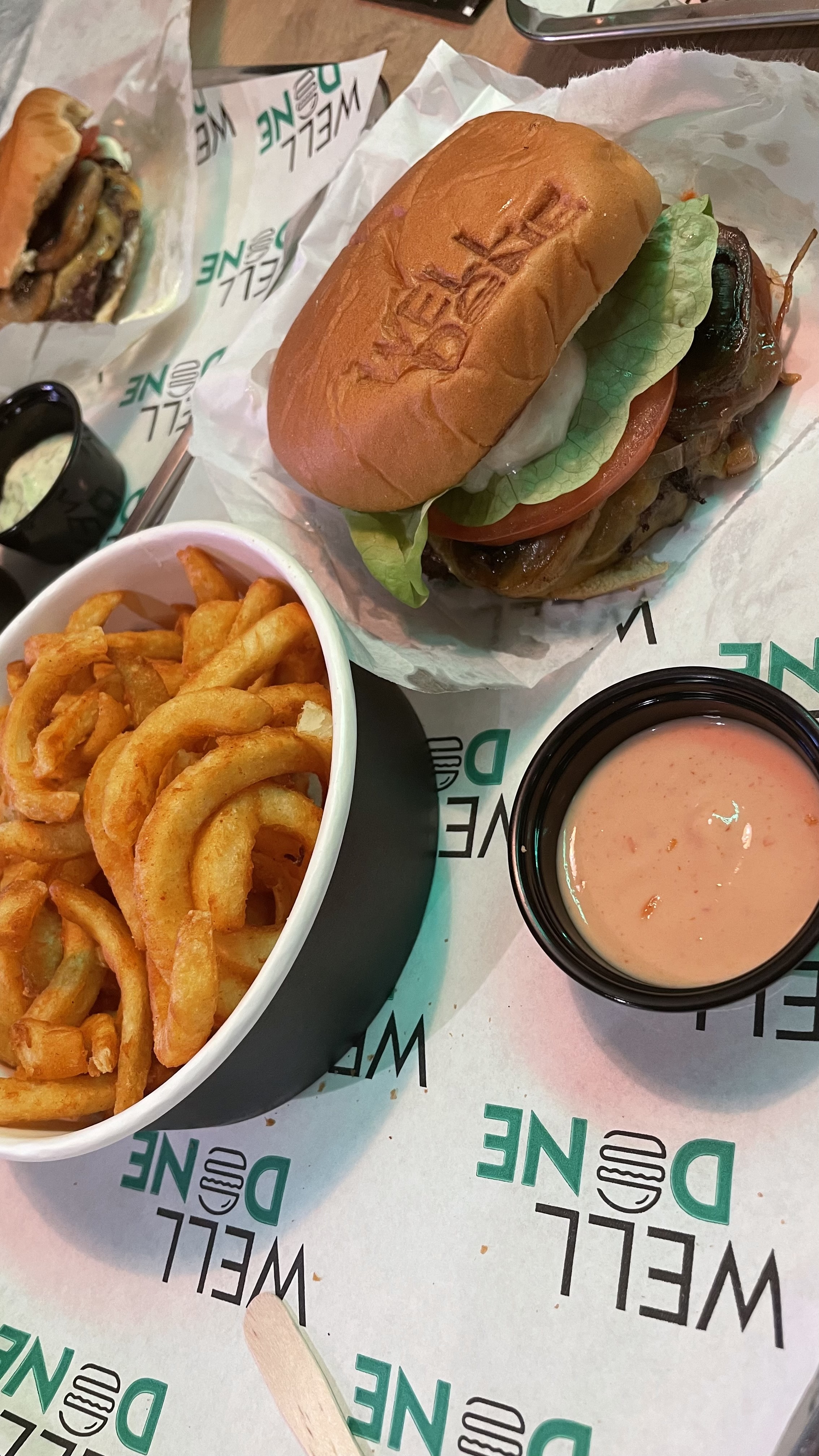Nous avons testé WELL DONE ce soir et c'était très bon, nous avons pris le burger well done et le smoky ils étaient délicieux. Nous avons pris les frites krinkles, les portions sont très généreuses, dommage pour la boîte fermé avec le couvercle en plastique, même s'il y a un petit trou d'aération les frites étaient un peu ramolli arrivé à la maison.