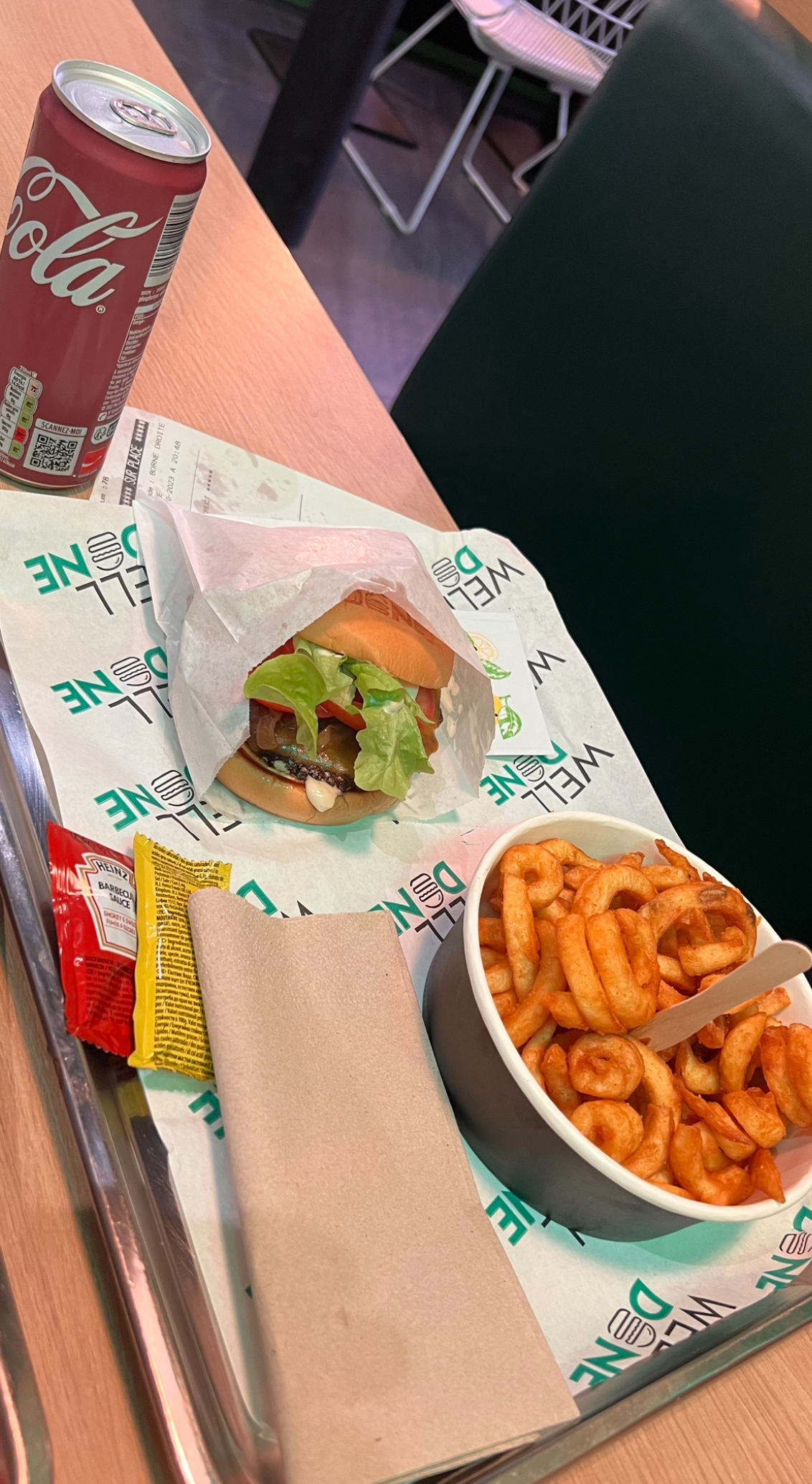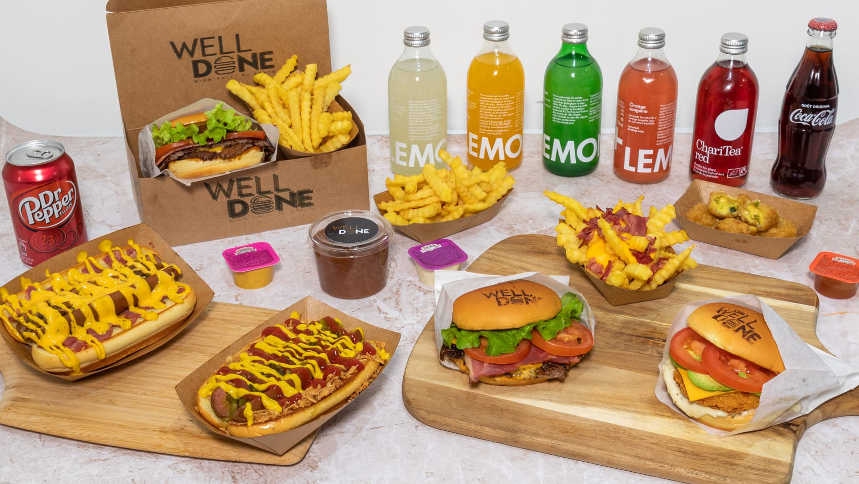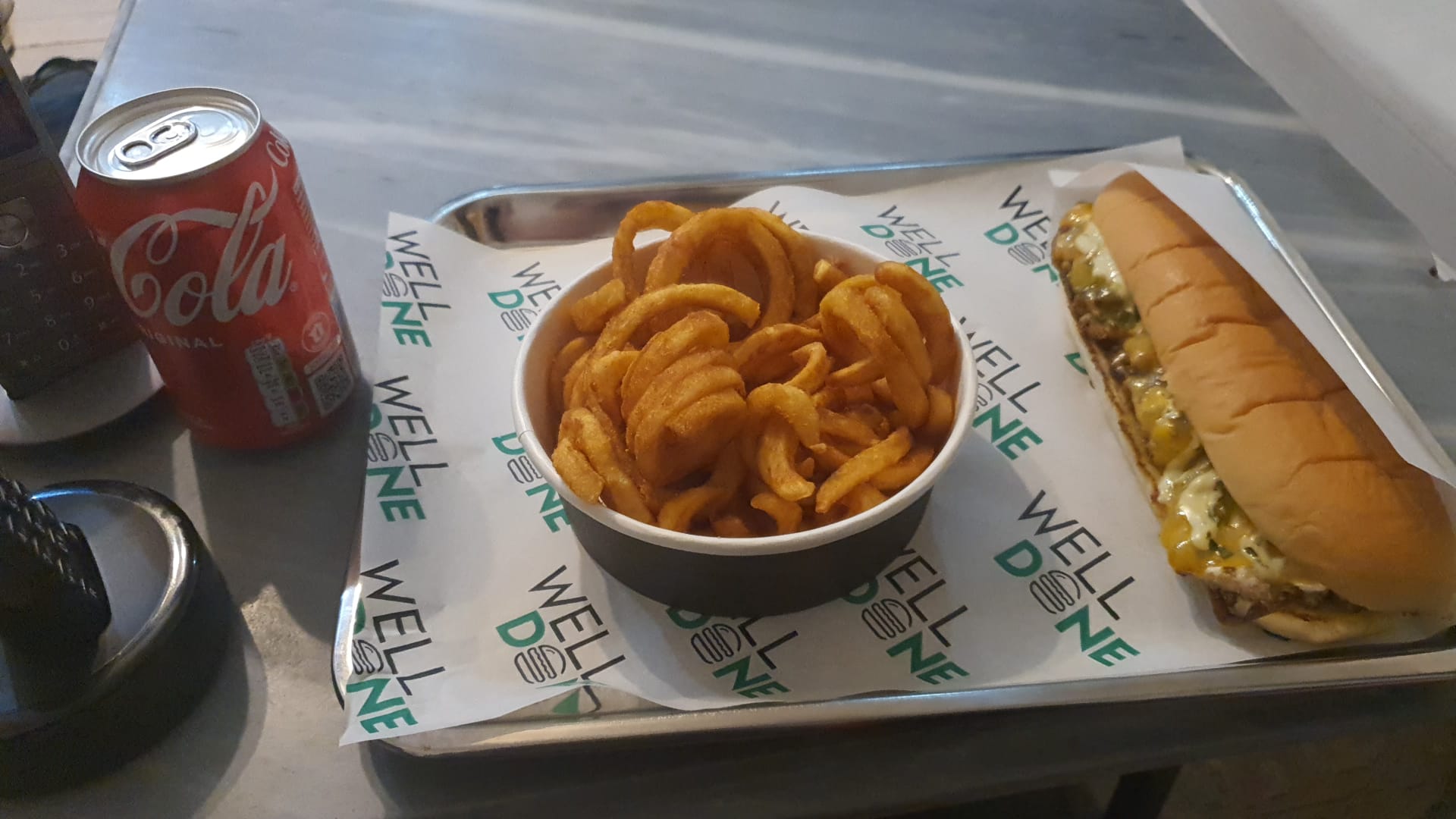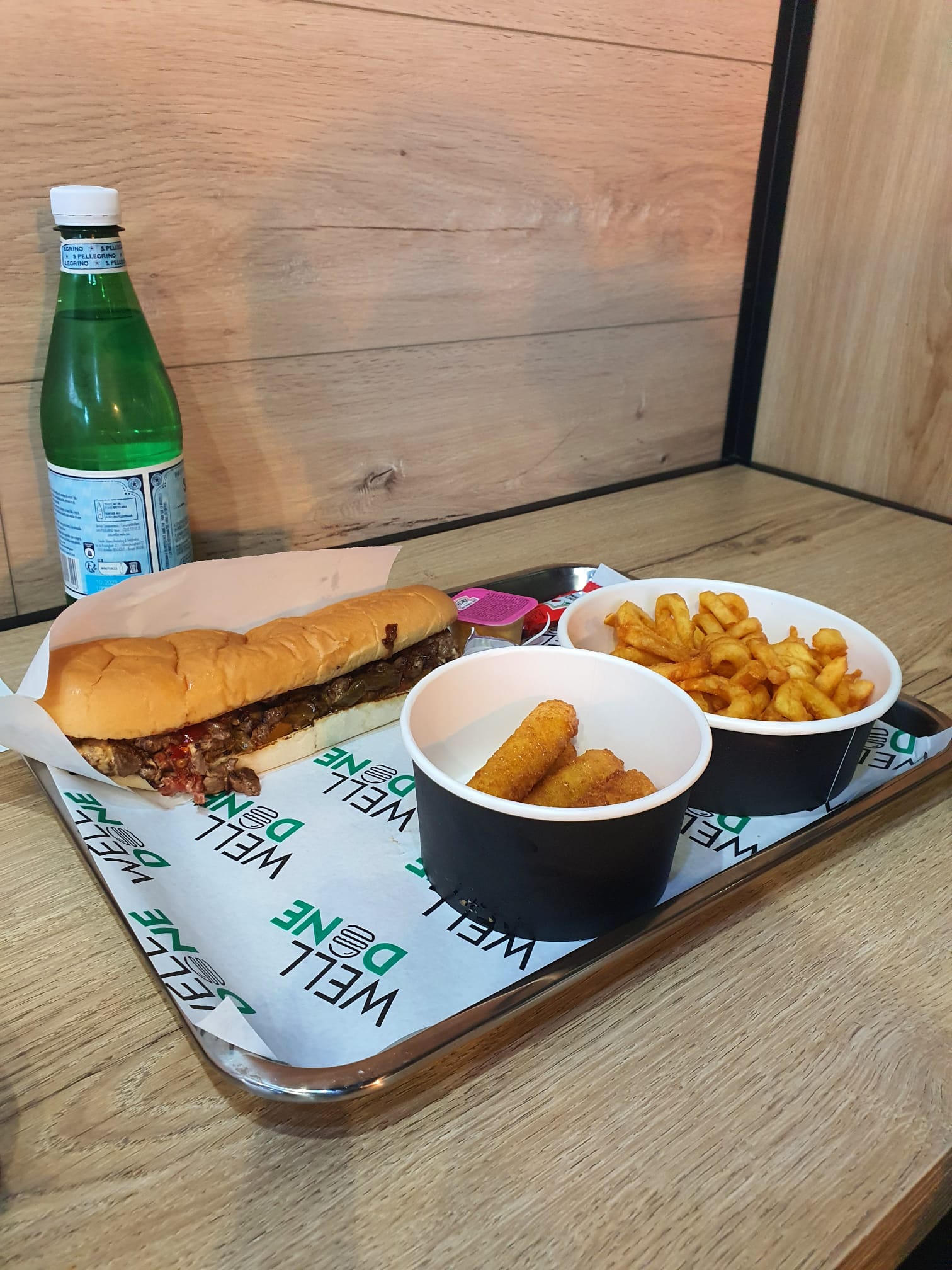 Bonjour après etre tombes sur beaucoup de pub autour du welldone et en tant que grands amateurs de smash il nous fallait tester ca! Malheureusement nous avons etes quelques peu déçus.. pas à la hauteur de nos attentes… C’était bon mais pas exceptionnel pour un smash. Nous avons été livres je ne peux me prononcer sur les lieux. Nous en avons pour 56e (6e frais de livraison welldone) 3 menus et un hot dog. La viande du cheese était sèche et cramée sur les contours… Et il est vrai que la sauce prend le dessus sur le goût bien qu’elle ne soit pas écoeurante non plus… les frites « enroulées » étaient tres bonnes par contre! Première experience, pas franchement convaincus à re tester peut être sur place…
