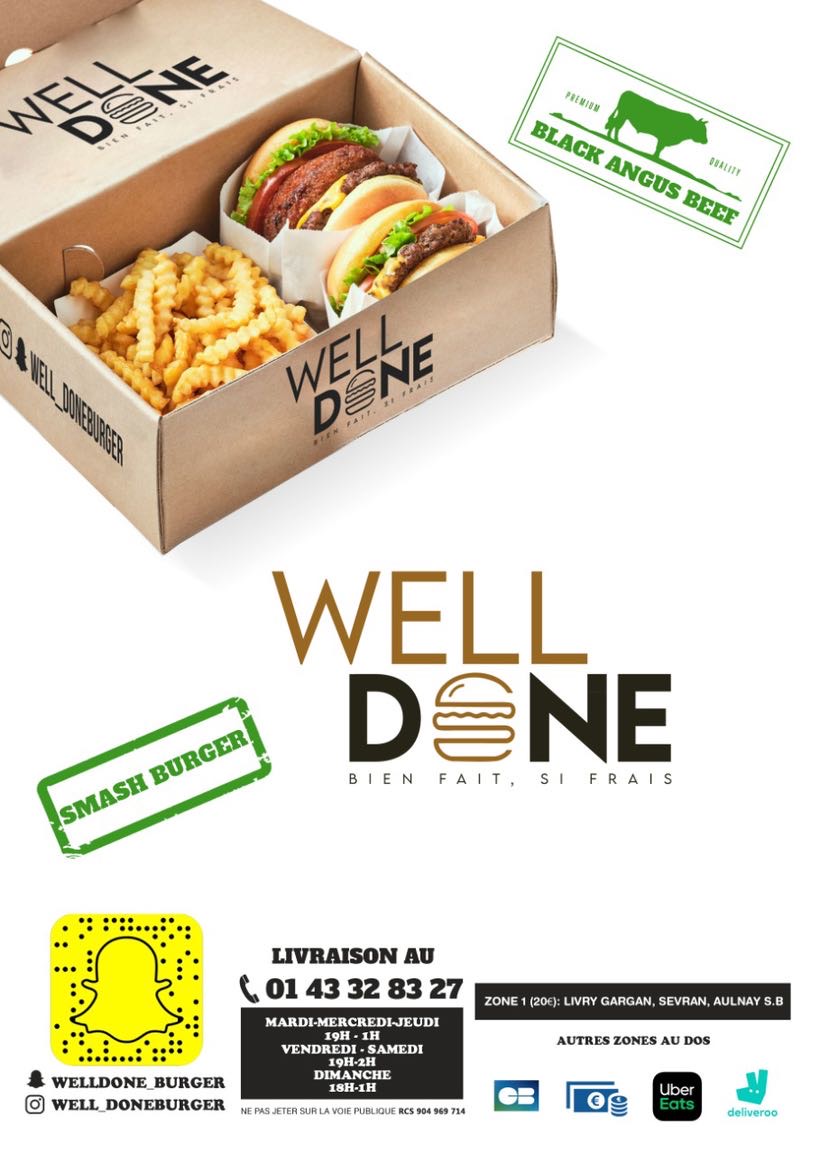 Étant un grand amateur de burger, j’ai été bluffé par qualité gustative de Well done. Cela fais maintenant 1 mois que je mange là-bas et je peux vous dire que c’est excellent rien à dire, je ne m’en lasse pas du tout et vous le conseil vivement. Sans oublier que l’équipe est au top et la livraison très rapide. Magnifique !!!