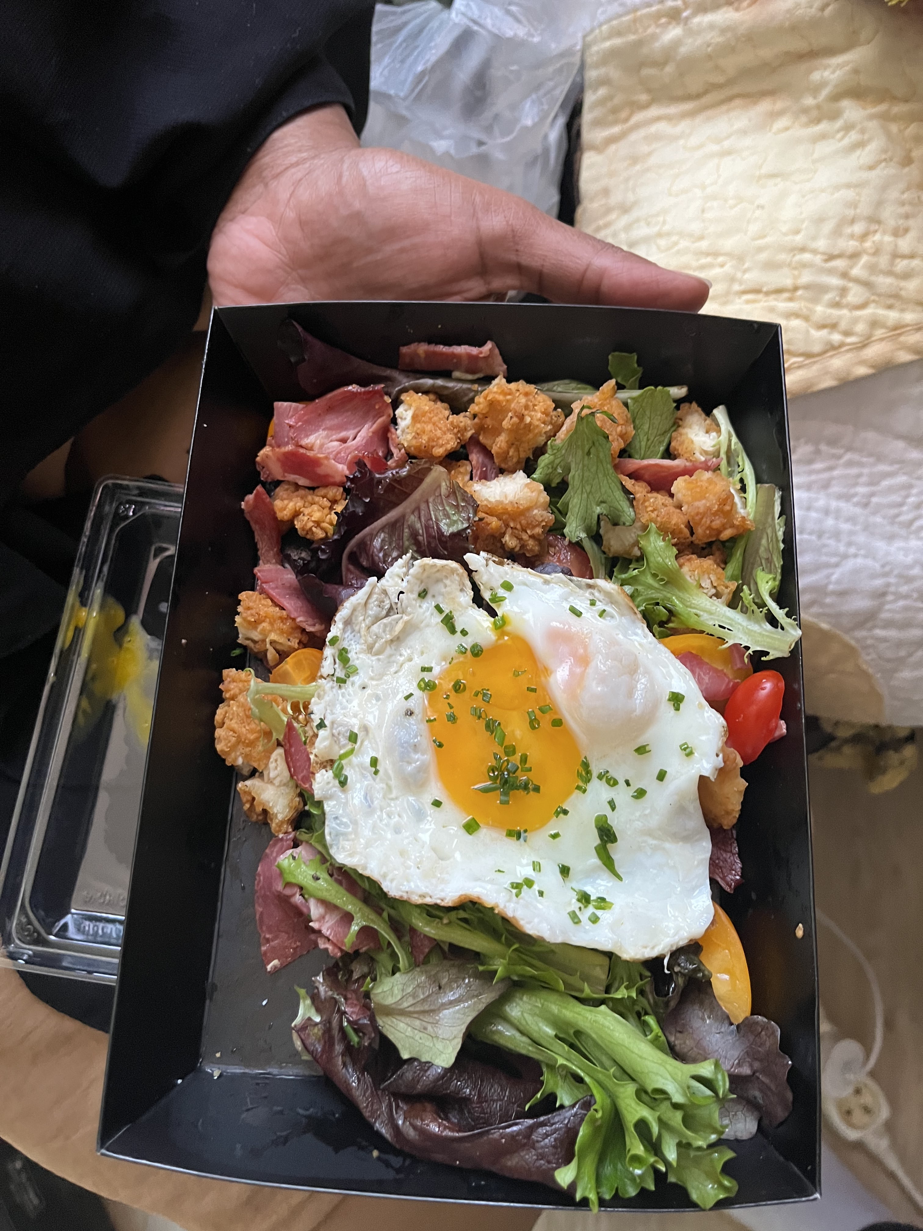 Ne prenez surtout pas la salade, 10€90 pour une barquette peu profonde avec 1tender découper photo à l’appuie, pas de possibilité de stationnement à côté, compliqué