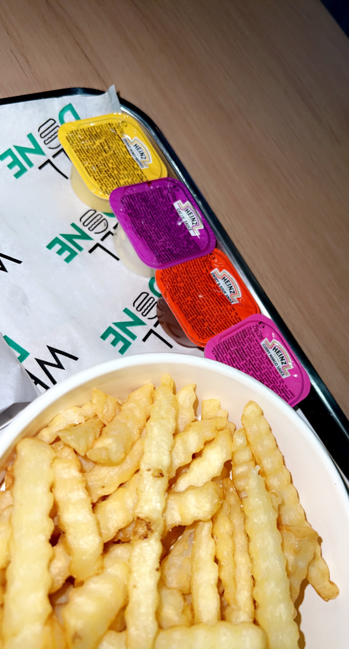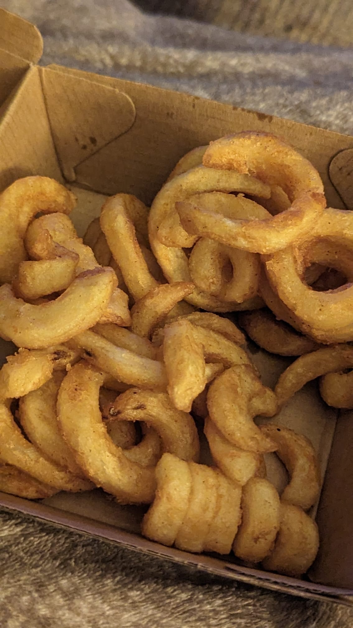 Bonjour, nos drites sont étudiées pour rester chaude et croustillantes pendant 15 minutes. Tous nos plats sont assaisonnés. Nous mettons du sel à disposition de nos clients s’ils veulent en rajouter.