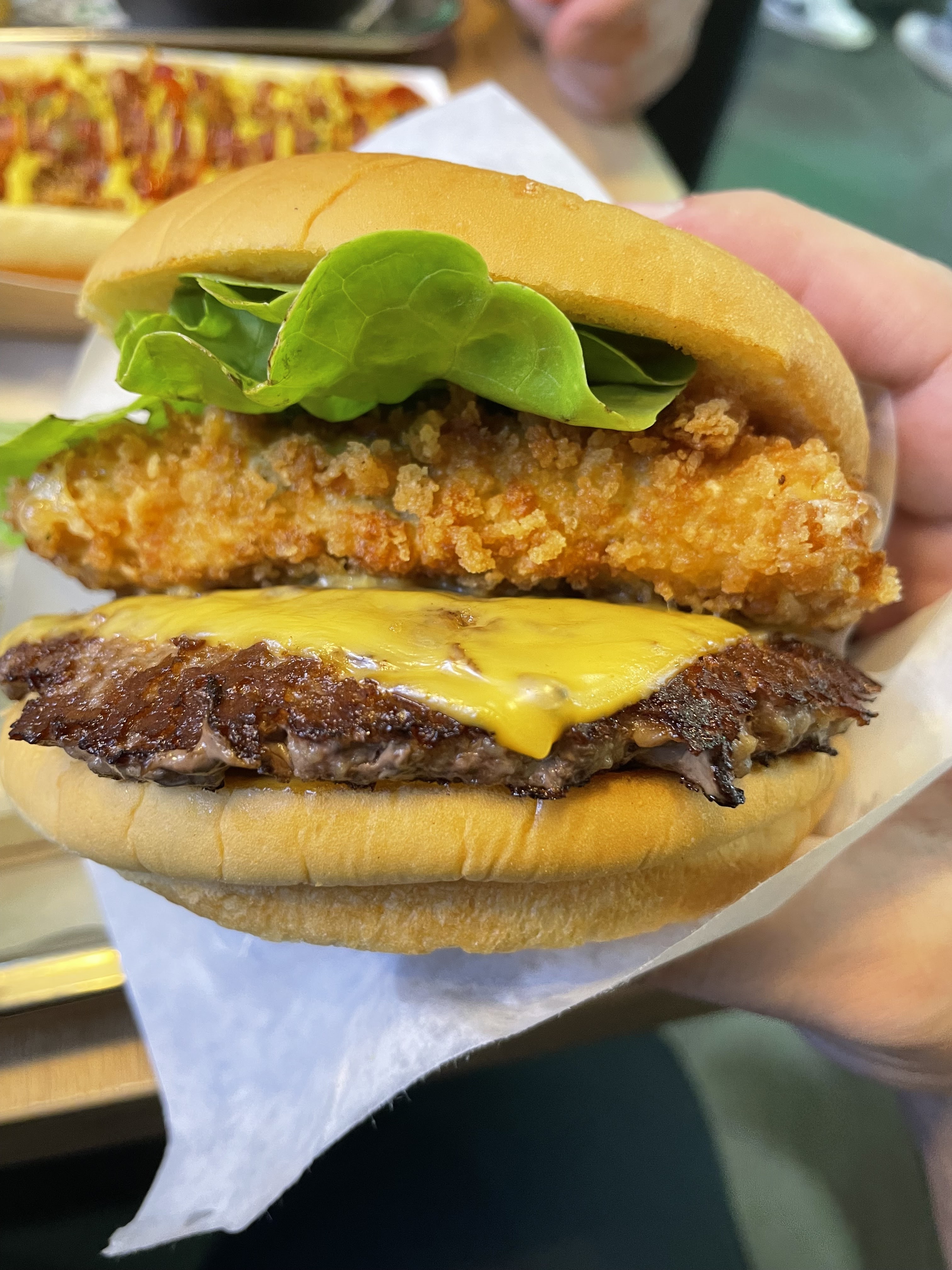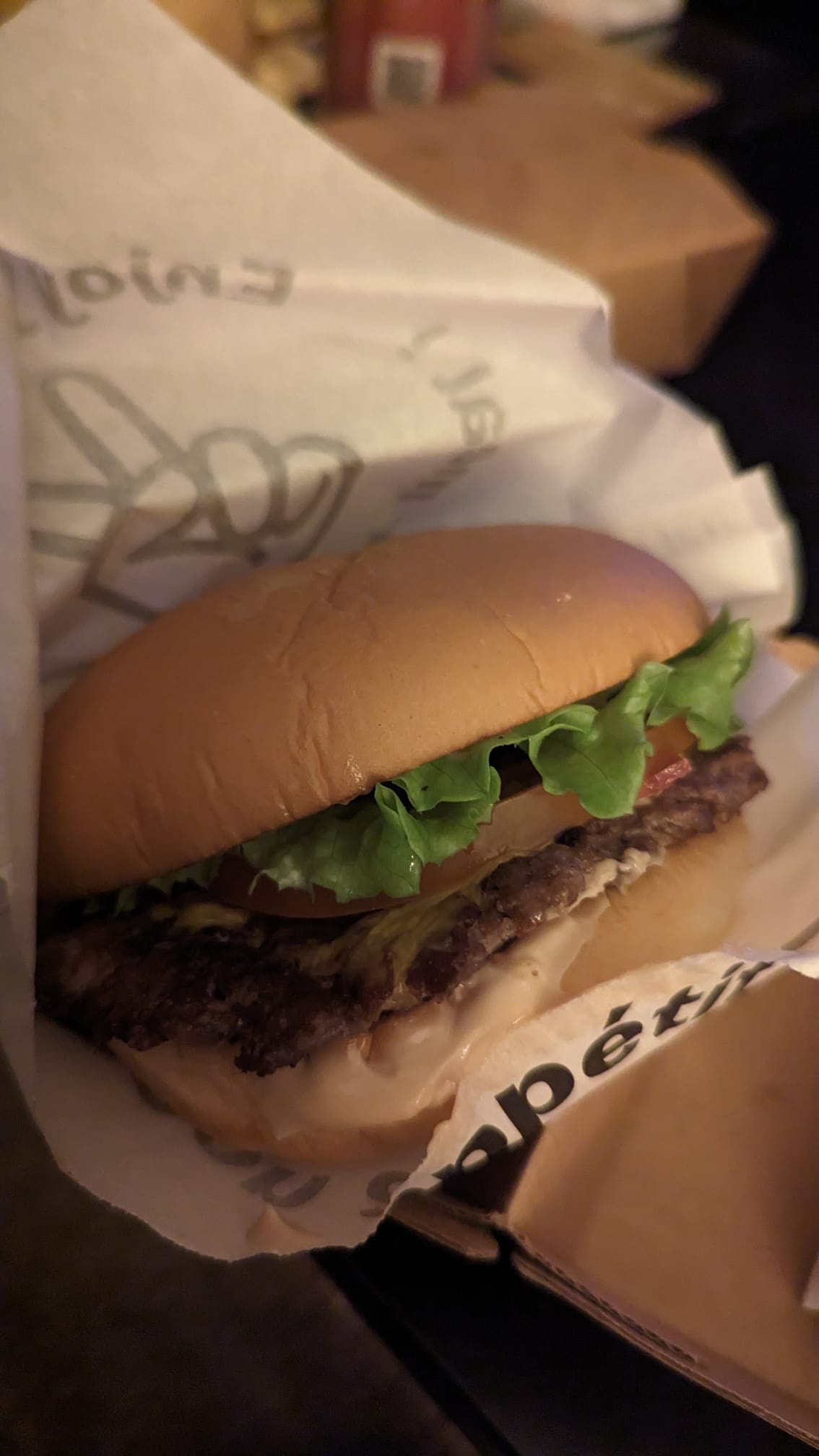 Vraiment pas ouf, rien à voir avec Shake Shack si ce n’est les frites. Les sandwichs sont très gras et ont un fort goût de beurre. C’est dommage car le pain et la viande ont l’air de qualité. Prix beaucoup trop excessifs