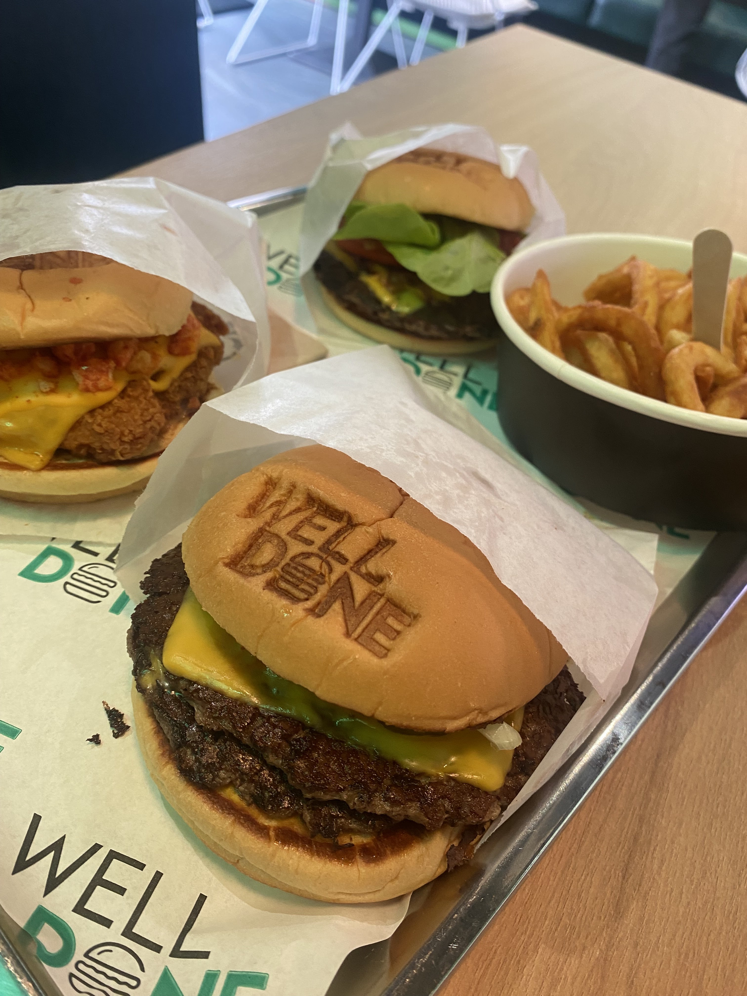 Je suis venue tester Well Done un soir juste avant 23h mais franchement bof. Sur 3 burgers, un était vraiment bon (le truffle) et un que je n’ai pas du tout aimé (l’effiloché). Moi qui pensais prendre rapidement à emporter, le temps d’attente est interminable ! Il a fallu attendre 40 minutes sur place pour seulement 3 minis burgers (30€) sans menus 🤯 Les prix sont vraiment excessif pour la quantité, il ne faut pas avoir faim parce que ça ne suffit clairement pas 🥲