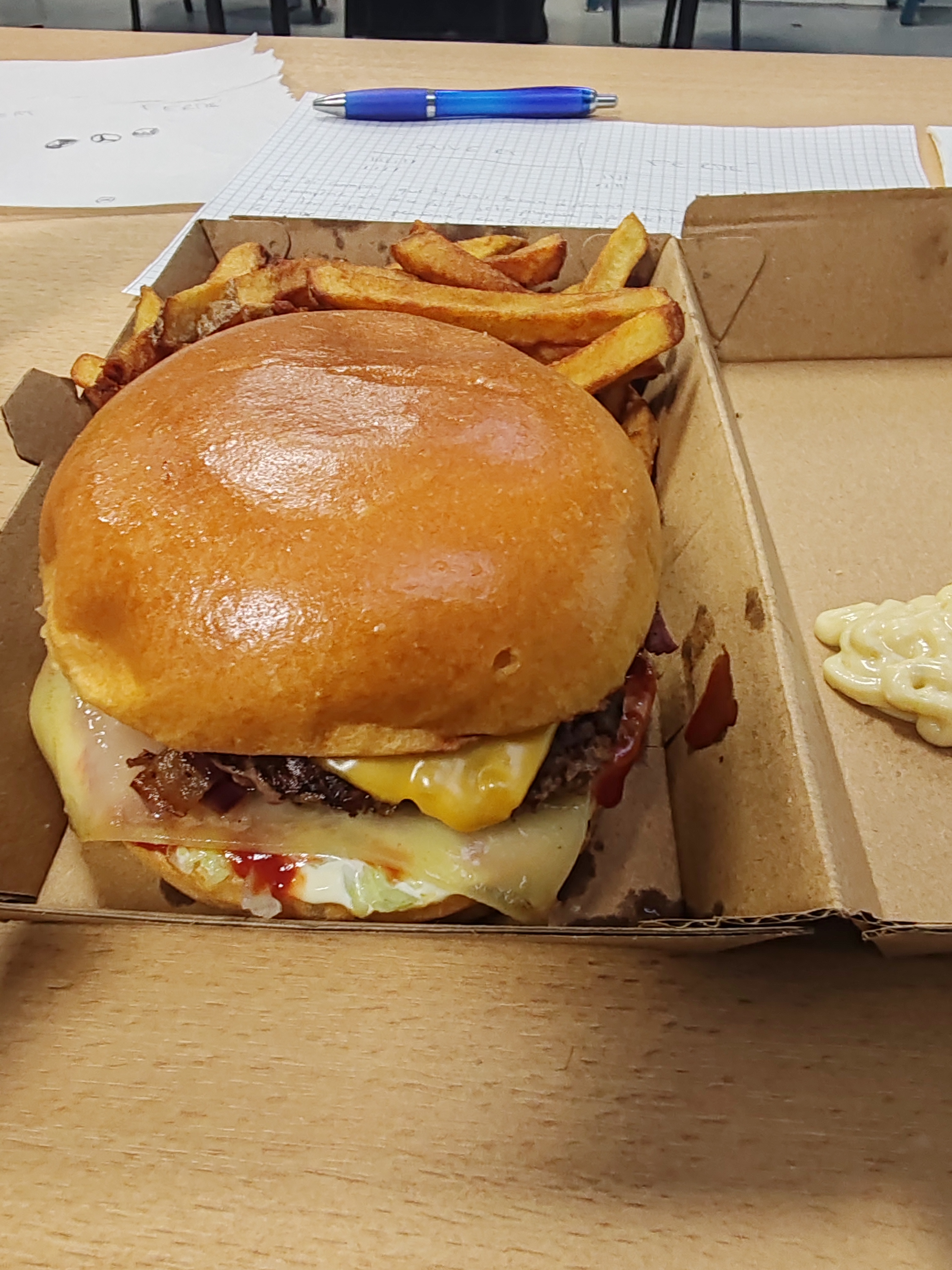 Très bon burger assuré et livré par le gérant très agréable personne qui devait pas faire le déplacement mais qui a quand même fait l'exception, je reprendrais, bravo.