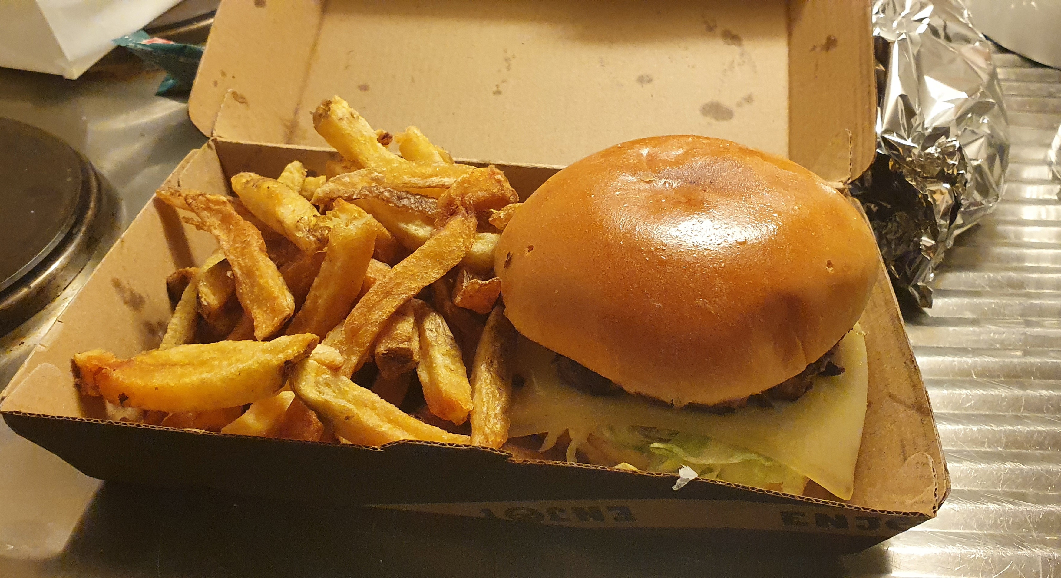 À emporter et c’est toujours un délice ! Le bon burger généreux et frites maison