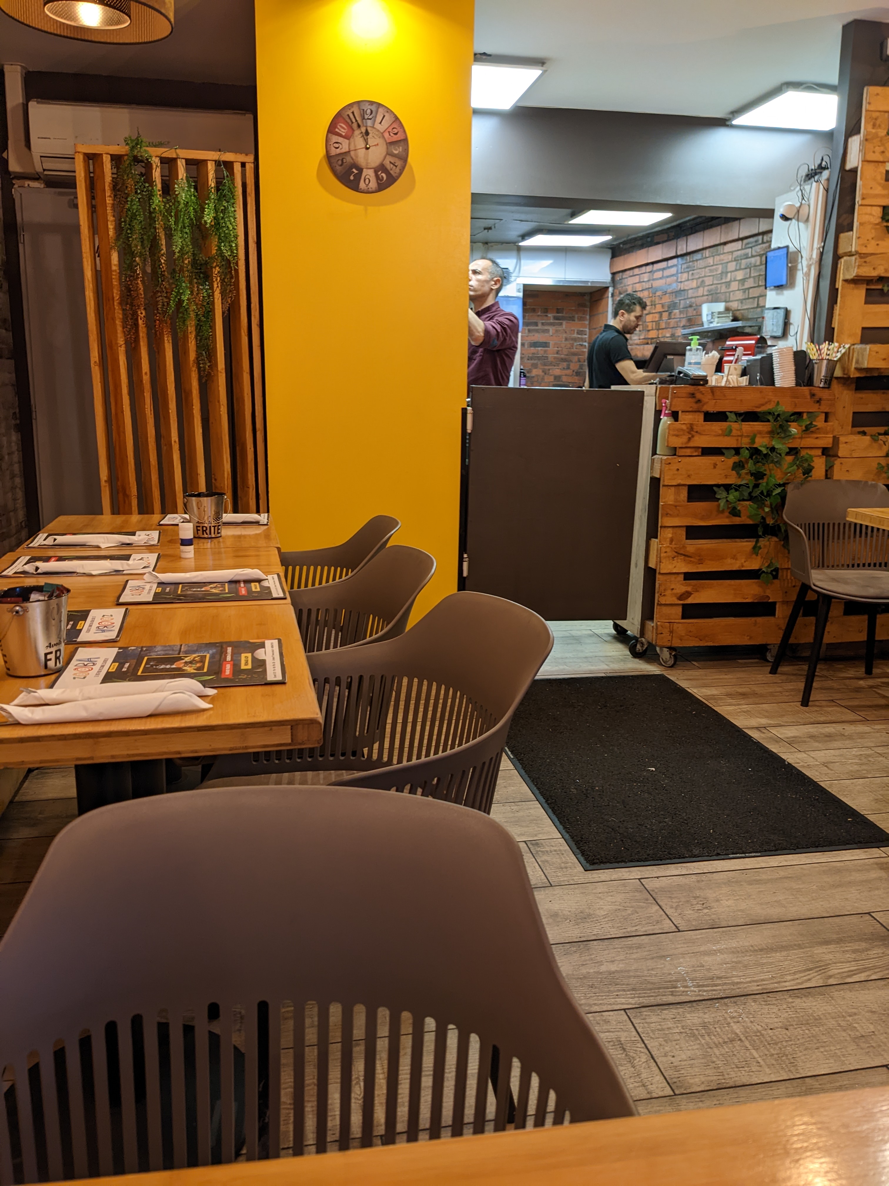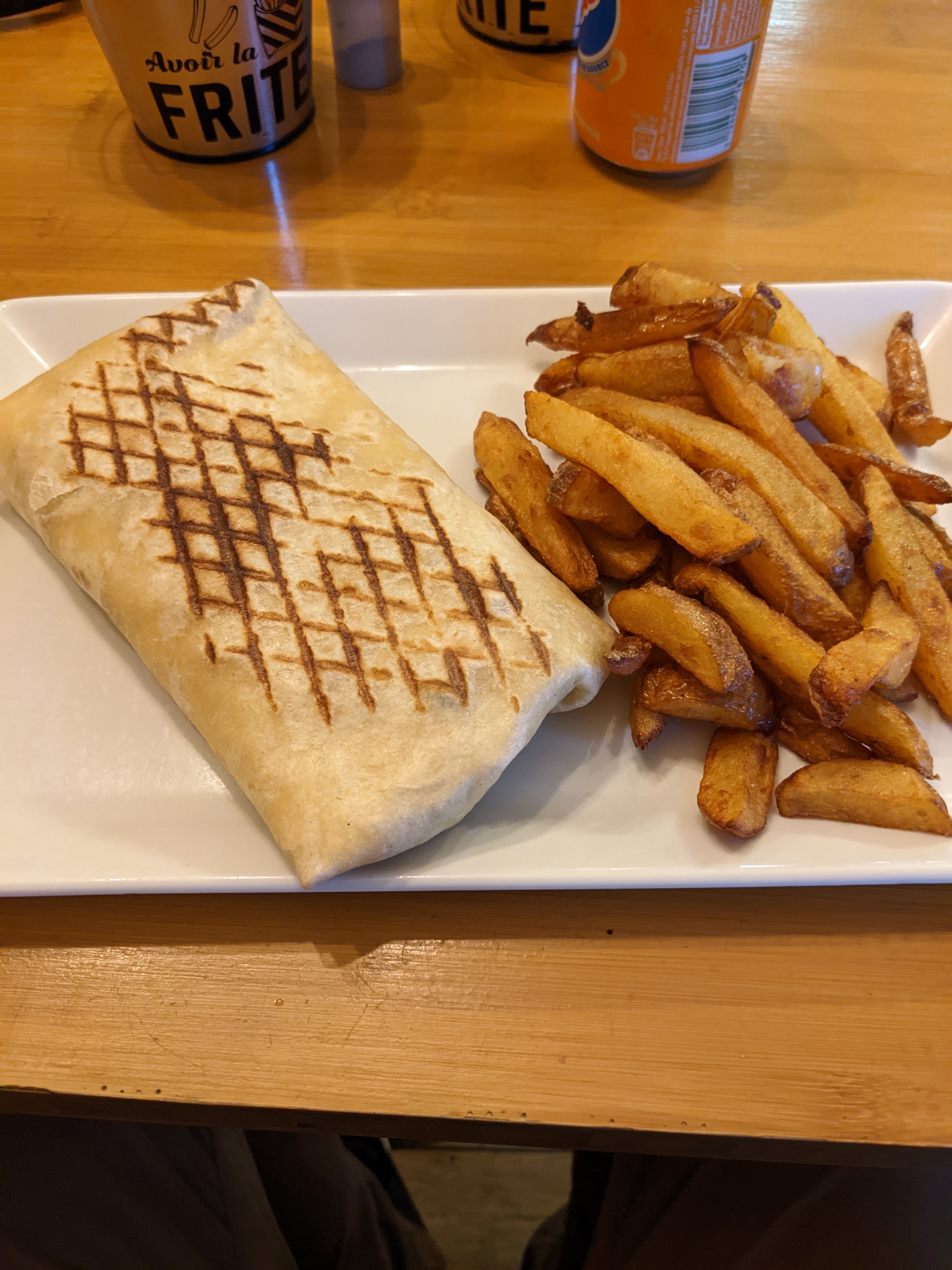 Frites maison très bonnes, tacos au poulet cuit a la braise excellent ! Serveur sympathique mais petit point négatif pour le deuxième qui faisait la gueule et était un peu nonchalant mais très bon resto